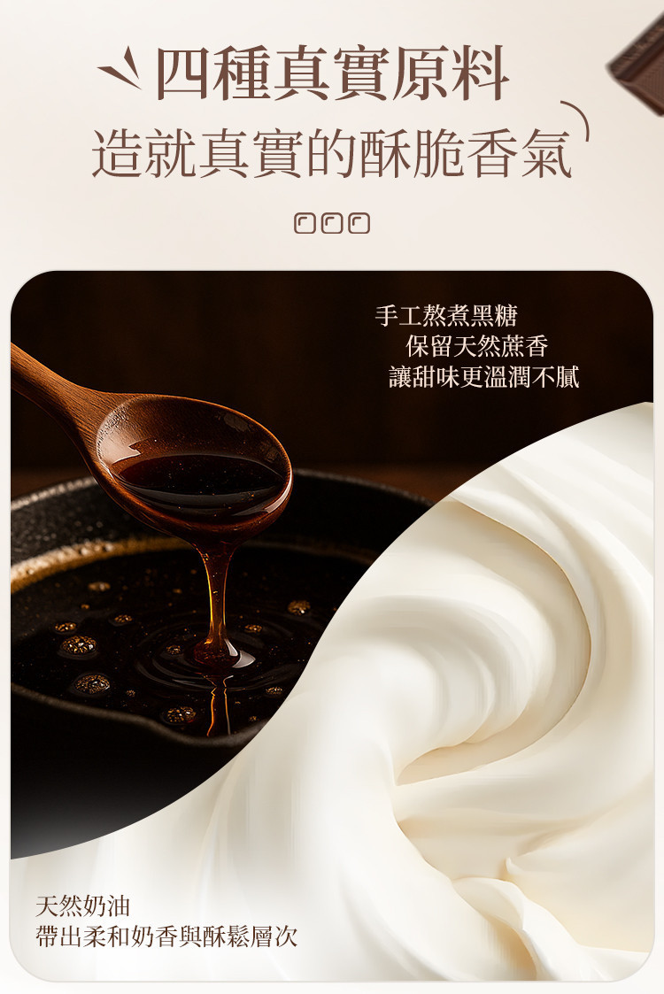 選用 手工熬煮黑糖帶來溫潤焦香與天然蔗香
