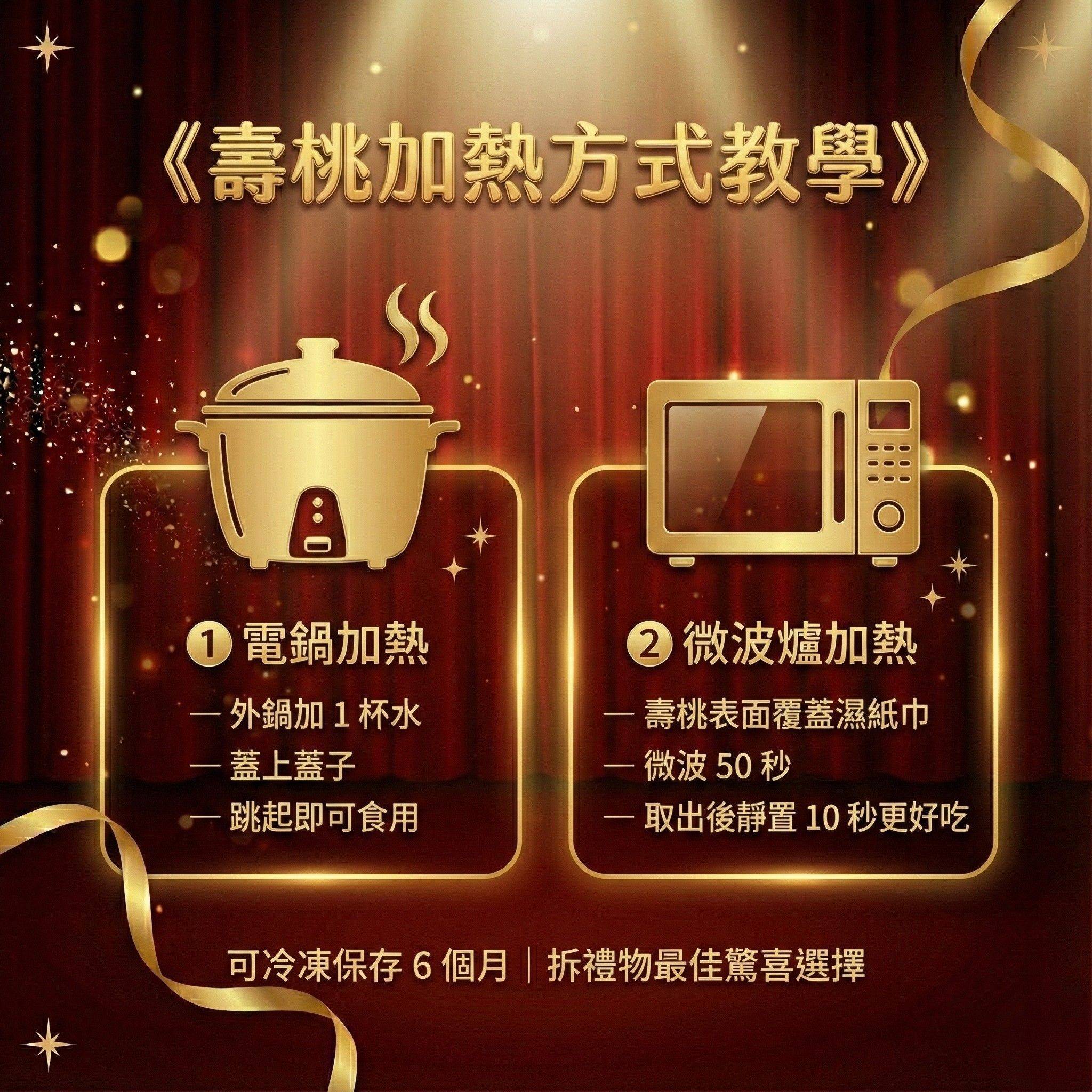 外鍋加 1 杯水 → 壽桃放盤子 → 蓋上 → 跳起即可